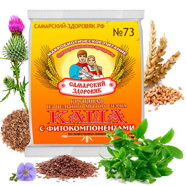 Цельные, с сохранением оболочек, зерна пшеницы являются источником углеводов, белков, жиров, витаминов группы В, Е, микроэлементов: Fe, Zn, Mg, Cu, Se, пищевых волокон (клетчатки). Fe входит в состав гемоглобина и миоглобина, фермента "каталазы" и др., благодаря которым оно участвует в кроветворении, тканевом дыхании и выполняет другие функции. Пишевые волокна (клетчатка) улучшают моторику ки шечника, устраняют запоры, служат естественным сорбентом - связывают и выделяют соли тяжелых металлов, устраняют дисбактериозы. Очень высока пищевая ценность белка льняных семян. Его аминокислотный состав аналогичен составу соевых белков, которые считаются наиболее питательными растительными протеинами. Льняное семя – один из богатейших источников лигнанов. Эти соединения, широко распространенные в растительном мире, способны защищать организм от некоторых видов гормонально зависимых онкологических заболеваний, в частности, рака молочной и предстательной желез. Пятьдесят граммов льняного семени ежедневно в течение нескольких недель нормализуют работу кишечника даже у пожилых людей, благотворно действуют на иммунную систему, защищают человека от инфарктов, снижают уровень холестерина в крови. Использование льна в питании благотворно влияет на сосудистую систему. В состав льна входит альфа-линоленовая кислота, способная предупреждать или снижать риск возникновения некоторых видов раковых заболеваний и нормализующая работу иммунной системы. Лён способствует усилению репродуктивной функции и стимулирует половую активность. Лен содержит полиненасыщенные жирные кислоты Омега-3 и Омега-6, устраняющие тромбы кровеносных сосудов, снимает аритмию при заболеваниях сердца. Способствует очищению энергетики, создает ощущение душевного покоя. Широко известны также его противопаразитарные свойства. Стевия – замечательный антиоксидант, связывающий свободные радикалы, нейтрализуя их действие. Снижает кровяное давление и уровень холестерина в крови, укрепляет сосуды и чистит их от «холестериновых бляшек», восстанавливая их эластичность. С помощью стевии можно лечить аллергические диатезы у детей. Выявлено положительное влияние стевиозида на деятельность печени и поджелудочной железы. Стевия нормализует работу желудочно-кишечного тракта, улучшает пищеварение и предотвращает образование язв, повышает стойкость организма к инфекционным заболеваниям, улучшает сон и умственную деятельность. Расторопша содержит вещества — флаволигнаны, которые восстанавливают мембрану клетки печени и помогают избавиться от многих болезней печени, желчного пузыря, поджелудочной железы, почек, а также способствуют профилактике болезней этих органов. Благодаря присутствию в составе каши расторопши восстанавливаются клетки печени, начинает восстанавливаться хрящевая ткань и, как следствие, перестают болеть суставы и позвоночник. Каша снимает любую аллергию. Показания к применению:Аллергия, Атеросклероз, Бессонница, Гастрит, Гипертония, Диабет, Дисбактериоз, ЖКТ, Иммунитет, Онкология, Печень, Поджелудочная железа, Щитовидная железа, Базедова болезнь, Экзема, дерматит, Эндокринология Способ приготовленияКаша моментального приготовления. Для её подготовки к употреблению в пищу необходимо разбавить её любой жидкостью (вода, молоко, бульон, сок и т.д.) т